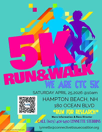 Lace up with us for a 5K that supports connective tissue syndrome research. This is more than a race — it’s a community coming together to fund science, spread awareness, and support those affected with EDS, Marfans Syndrome and Loeys-Dietz Syndrome.